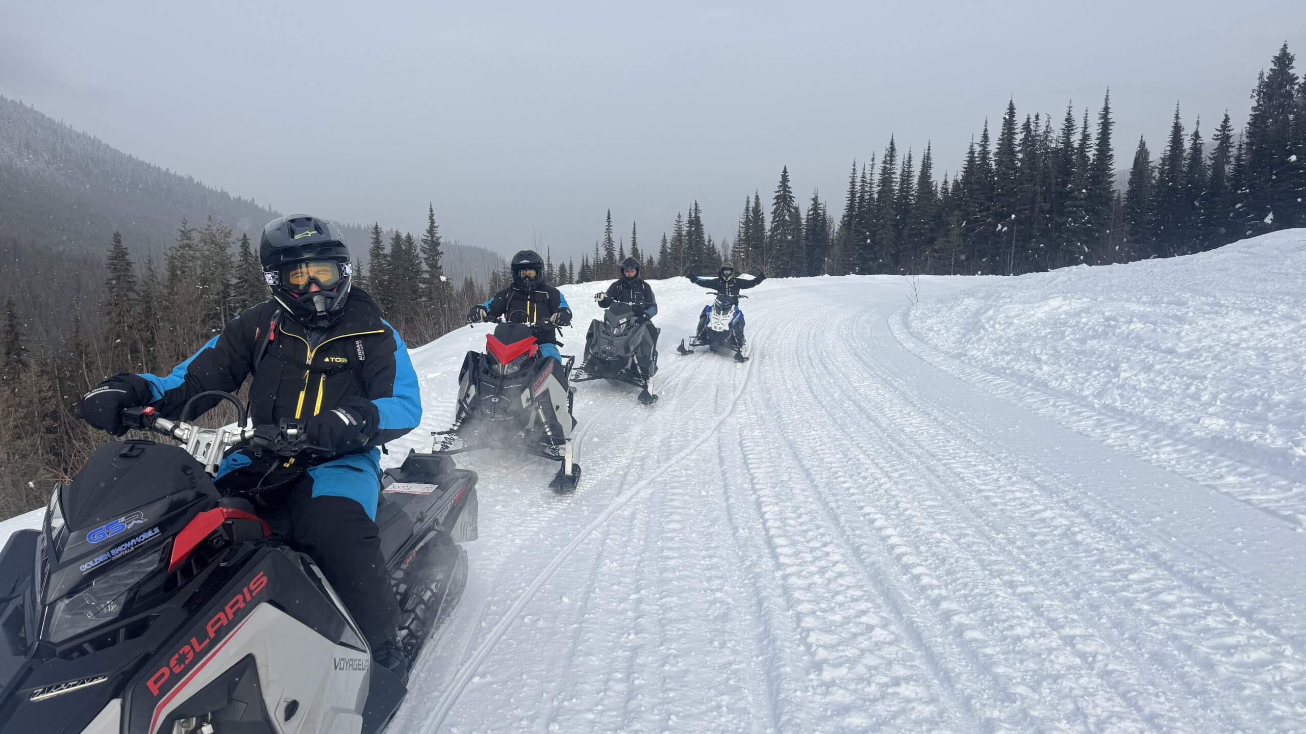 Snowmobile conditions in Golden are better than you might think. There hasn’t been a ‘big’ dump recently but a few cms here and there has added up to some pretty decent coverage out there. And as you may know, there is a great base this year so all the new stuff is straight bonus. There’s a little bit of snow again in the forecast and avalanche conditions look to remain moderate. Grooming is working in all 3 areas and the cooler valley temps will help keep the trails smooth.