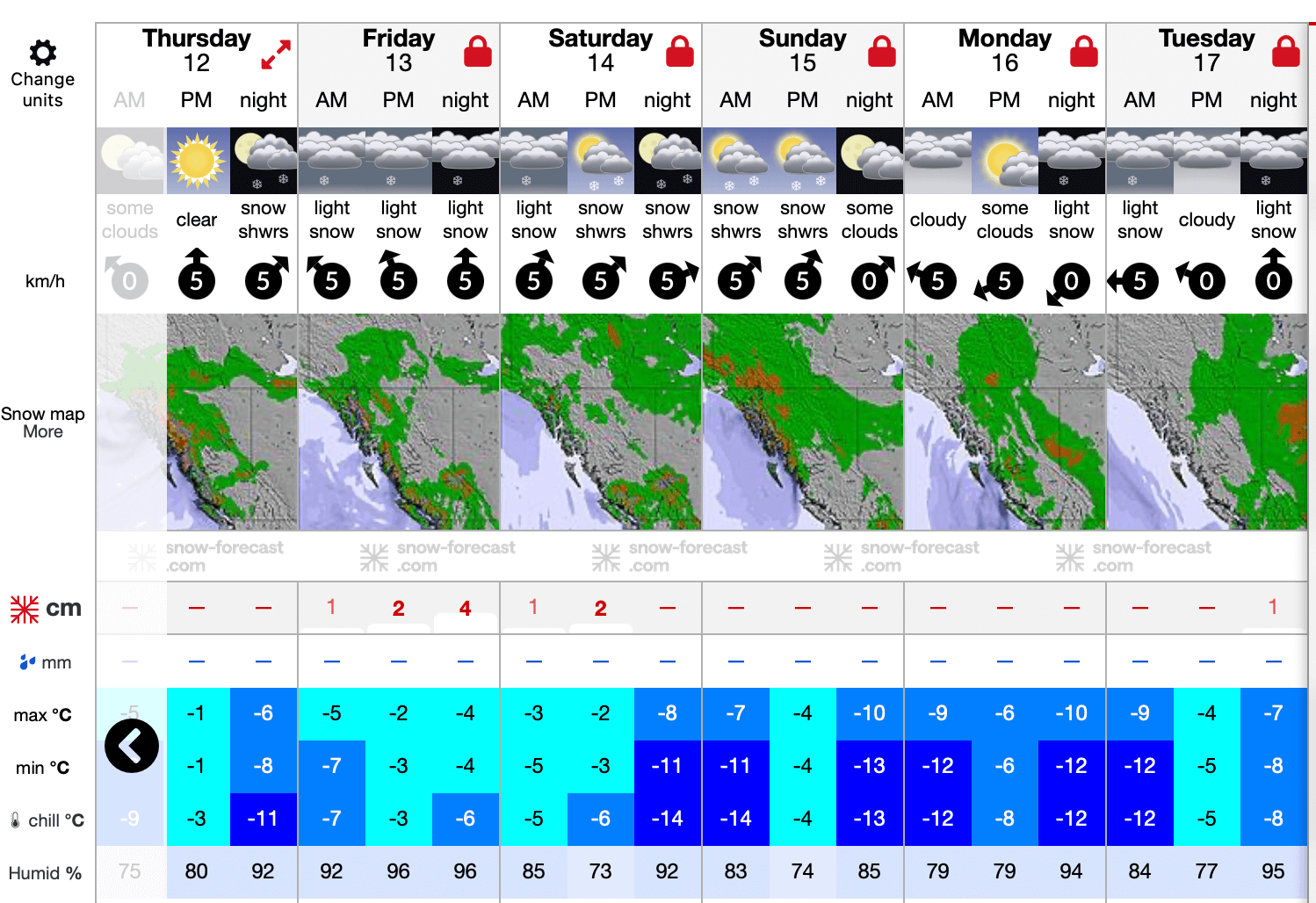 Golden has received anywhere from 8 to 25 cms this past week and you can see the variations of depth depending on what valley you go into. It does seem like the latest storms tracked a bit south. There’s approximately 10 cms in the forecast and alpine temps look to remain in the negative numbers so that should preserve the snow.
